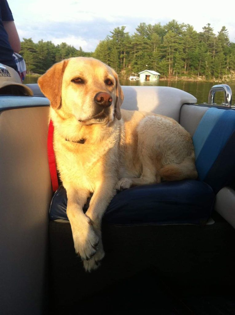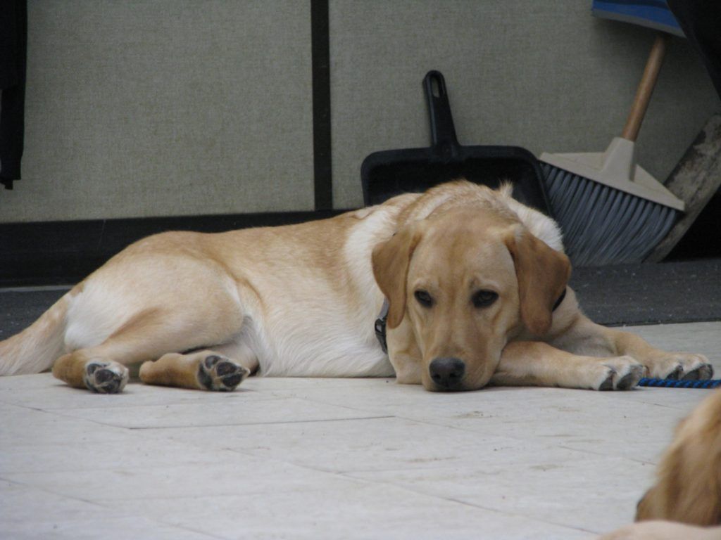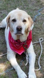 I look over at my beautiful yellow Labrador Retriever named Charity.